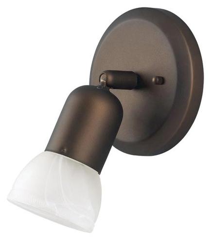 The Patriot Lighting® Jasper 7.125-inch traditional flush mount light with a movable/swivel head is available with the ever-popular oil-rubbed bronze finish and white alabaster glass. This is a multi-use fixture that can be mounted on ceilings or walls and it requires one 60-watt type A bulb.