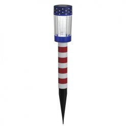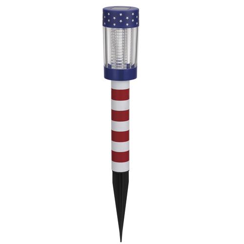 The Patriot Lighting? Solar Stake Light features a Multi-color finish of a Patriotic themed design. This light is sure to stand out anywhere placed in your yard and has a unique lighting effect at night. It features a large, sturdy, ground stake for easy, stable, and secure mounting into the ground and it lights up automatically at night.