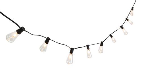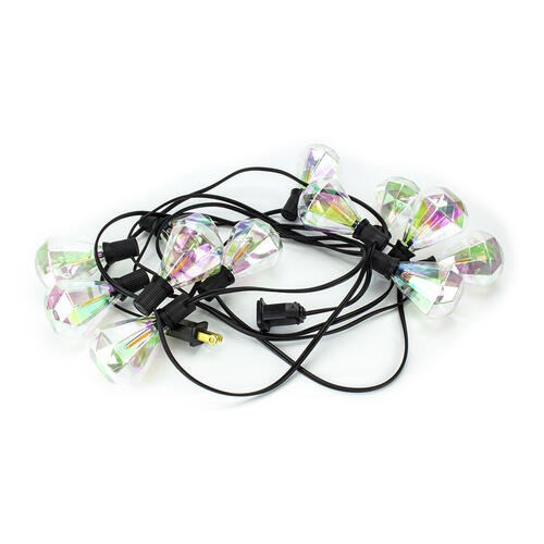 Use this Patriot Lighting® String Light with Colored Diamond Bulbs to decorate your outdoor patios, porches, or party events. The light set has a black wire with a overall length of twelve feet, and a total of 12 bulbs, with 12 inch spacing between bulbs. You can connect up to 50 sets end to end with no additional tools or wiring required.