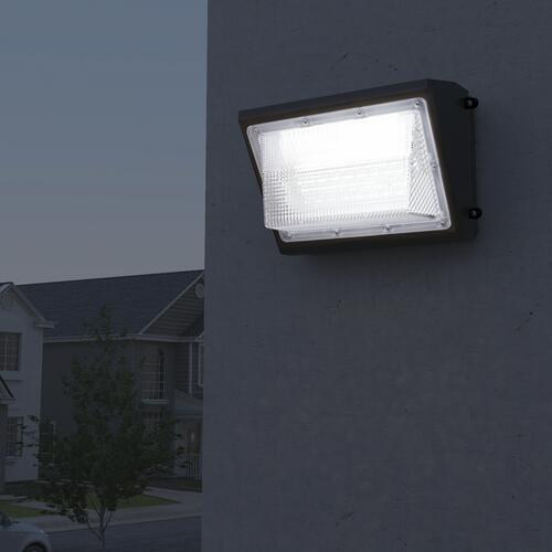 Ideal to mount on building walls where high pedestrian or vehicle traffic is present, this high-lumen wall pack is the perfect addition to any exterior areas where more light is needed. The bronze finish allows it to be inconspicuous so it doesn’t clash with any curb appeal. With its 5000-kelvin color temperature, it is bright as sunlight.