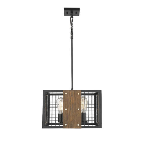 With its industrial-inspired black metal square cage design, warm rustic wood panels, and decorative rivets, you’re sure to love the Finn III pendant light by Patriot Lighting®. Four warm white, exposed filament, incandescent-style bulbs set the right mood for any room.
