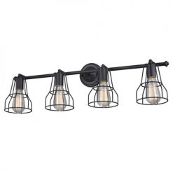 Cage like features give the Clybourn bath collection a modern yet industrial flair. Urban loft inspired spaces are a sure fit for this collection, handsomely finished in oil rubbed bronze. The simple bell-shaped characteristics are stylishly offered in both ceiling and wall mounted styles, perfect for a bath, hallway or even home office. The adjustable shades allow flexibility so light is pointed where needed most. Combine that with a vintage Edison style filament bulb to complete the look.