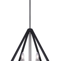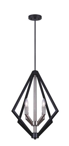 Enhance the beauty of your home not only with your decor, but with your lighting. Dryden adds a modern touch with its geometric frame that hangs distinctly from an adjustable downrod, all in a stunning two-tone finish of matte black and brushed nickel. To soften the sharp edges of its shape, Dryden has added four candelabra-style lights inside for a distinct yet warm glow.