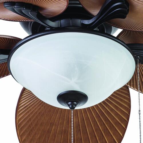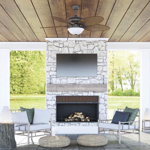 The Patriot Lighting Florida Breeze ceiling fan offers you a palm blade for your nautically-inspired space. The damp rated Florida Breeze ceiling fan comes with two 8-1/2-Watt LED bulbs for additional savings.