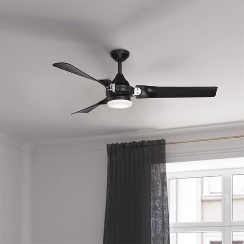 The Patriot Lighting Istanbul 52-inch dual-mount indoor/outdoor ceiling fan features a black finish with white glass. The fan blades adopt a simple yet special design that gives a gorgeous look to any space. This ceiling fan is perfect for large rooms in the home or office. With state-of-the-art technology and a totally unique appearance, the twisting curvature of the propeller-like blades harmoniously combine with the exposed hardware and exceptional finishes, and the result is something extraordinary.