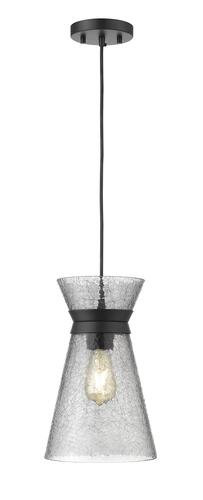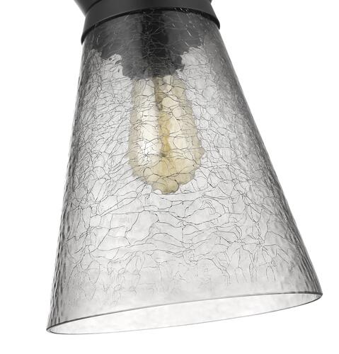 Steal the show with the Abelia oversized pendant by Patriot Lighting®. With its sultry smoke crackled conical glass shade and matte iron black fittings enveloping the single suspended light within, the Abelia is a cool industrial inspired accessory in any room it hangs in. Easily adjust the hanging height to work over a kitchen table or gracing an entry or hallway. Add an exposed filament Edison style E26 LED bulb for the perfect finishing touch.