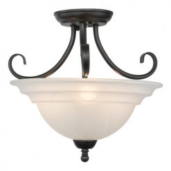 The curved arms and white alabaster glass are the key elements of this transitional collection. The well-balanced design details highlight the natural beauty of the materials and are perfectly combined to create a sophisticated, elegant statement. The Babylon collection is offered in multiple finishes. Medium screw base lamping provides maximum light output, and flexibility in bulb choice. This versatile fixture can be installed two ways; mount as a semi flush ceiling fixture or use the chain to mount as a pendant.
