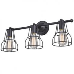 Cage like features give the Clybourn bath collection a modern yet industrial flair. Urban loft inspired spaces are a sure fit for this collection, handsomely finished in oil rubbed bronze. The simple bell-shaped characteristics are stylishly offered in both ceiling and wall mounted styles, perfect for a bath, hallway or even home office. The adjustable shades allow flexibility so light is pointed where needed most. Combine that with a vintage Edison style filament bulb to complete the look.