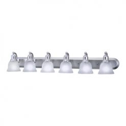 The transitional design of the Lasalle bathroom vanity light fixture blends well with most decors. It features a brushed nickel finish with white alabaster glass shades. The full back plate makes off center electrical boxes a non-issue. Versatile reversible mounting option lets you install this fixture up or down. This bathroom fixture is perfect over large vanities or double vanities where there is only one outlet box.