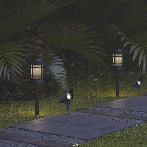 This Patriot Lighting® Loretto low-voltage LED path light set includes six landscape path lights, two spot lights, one 48-watt transformer with a photocell, eight stakes, and one 50-foot cord. It is energy efficient and features a clear seeded glass lens. The Loretto path lights offers a stylish, industrial-inspired look. It can be installed almost anywhere within reach of a power supply and is perfect for lining your pathway or garden when installed in multiples. It features a bronze finish that adds a variety of outdoor decor styles. The light provides an attractive touch for any exterior. At the same time, it also additionally offers nighttime security for your home.