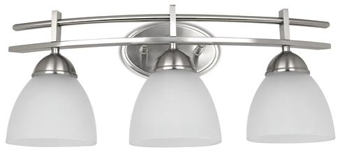 The Patriot Lighting« 22.5″ Meila Three-Light Vanity Light combines fashion with the ability to fit many different styles of d?cor. This bathroom fixture features a brushed nickel finish with the added benefits of LED technology. These lights only use 24.5 watts of energy and last up to 50,000 hours of use without replacing any bulbs.