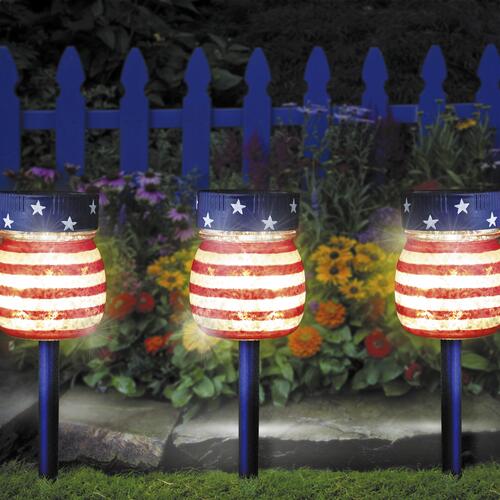 This solar light offers a Patriotic ambience and is the perfect garden decor for summer. The fairy lights inside the handpainted glass jar adds a great glow and touch to everyone’s summer garden. Use anywhere in your garden to light the way without cords and wires.