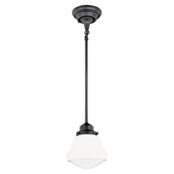 The Huntley is a timeless collection inspired by mid-century small-town aesthetics. The vintage school house glass is the focal point of this design with its unique profile and glass options. Offered in multiple finishes and glass options, this versatile farmhouse light will provide a unique accent to a variety of kitchen, dining, and bathroom settings. Medium screw base lamping provides maximum light output. The complete collection includes chandeliers, pendants, semi-flush ceiling lights, and 1, 2 3, and 4 light bathroom vanities.
