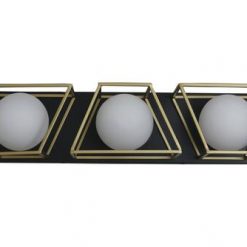 The contemporary design of the Neema black and gold three-light vanity light is both practical and stylish. It’s unique look makes for a great conversation starter and a fascinating lighting feature to highlight in your home.