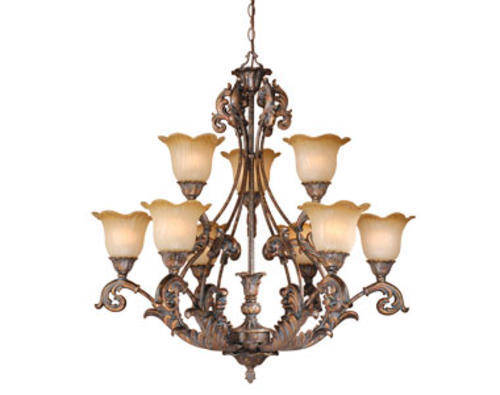Add mystery and appeal to your home with the Patriot Lighting® Seville nine-light chandelier. This fixture adds that certain sophistication and glamour that is timeless. The aged bronze finish and French champagne glass creates an immediately apparent elegance that is deserving of your home. It’s perfect for any foyer, entryway, or living area, sogo ahead, make a statement!