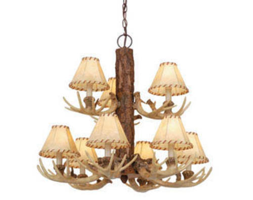 You can now bring light indoors with the Patriot Lighting® Yosemite nine-light chandelier. The rustic and chic look created by the natural inspired antlers adds interest without the complexity. The striking animal inspired design combined with the Noachian stone finish and interesting shades allows your home to have the lodge appeal it deserves. Add it to your foyer or living room for to create some buzz around this attractive piece.