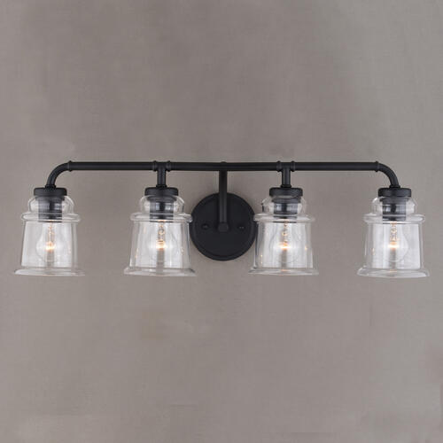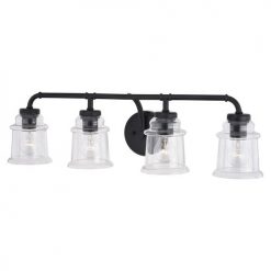 Clean retro lines define this beautiful collection called Toledo. Notes of industrial and farmhouse tradition are defined with the elegance of clear blown glass. Combine that with a vintage Edison style filament bulb to complete the look. Versatile reversible mounting option lets you install this fixture up or down. This bathroom light is perfect over large or double vanities where there is only one outlet box.