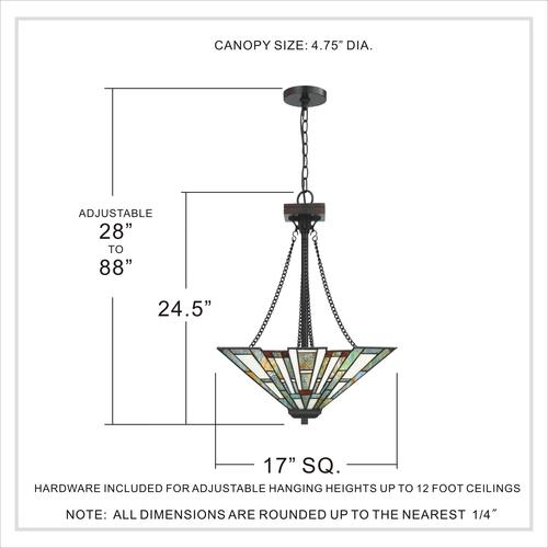 - Hardware included for adjustable hanging heights up to 12 foot ceilings