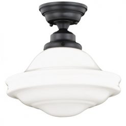 The Huntley is a timeless collection inspired by mid-century small-town aesthetics. The vintage school house glass is the focal point of this design with its unique profile and glass options. Offered in multiple finishes and glass options, this versatile farmhouse light will provide a unique accent to a variety of kitchen, dining, and bathroom settings. Medium screw base lamping provides maximum light output. The complete collection includes chandeliers, pendants, semi-flush ceiling lights, and 1, 2 3, and 4 light bathroom vanities.