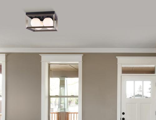 The Patriot Lighting® Ottilee flush mount is strong, charismatic, and created to shine. Perfect for any entranceway, bathroom, bedroom, or hallway, the mid-century modern feel of Ottilee draws you in with its round flat opal glass shades and the use of both matte black and gold finishes.
