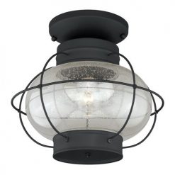 - Textured black finish with clear seeded glass