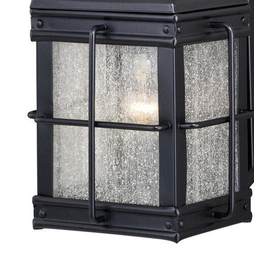 - Oil-rubbed bronze finish with clear seeded glass