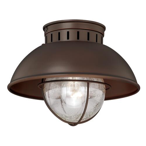 The Patriot Lighting® Harwich is the perfect addition to your outdoor areas. The burnished bronze finish and clear seeded glass combine perfectly to give you the right look. The interesting design on the glass makes this fixture much more impressive – it’s no ordinary light. Accent your home’s beauty with the Harwich flush mount light.