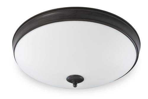 This decorative ENERGY STAR®-rate fixture is a 19-inch LED flush mount light and has a satin bronze finish with a frosted white opal glass shade. This fixture produces 2,151 lumens and can be dimmed by using a TRIAC wall dimmer, specified in the instructions.