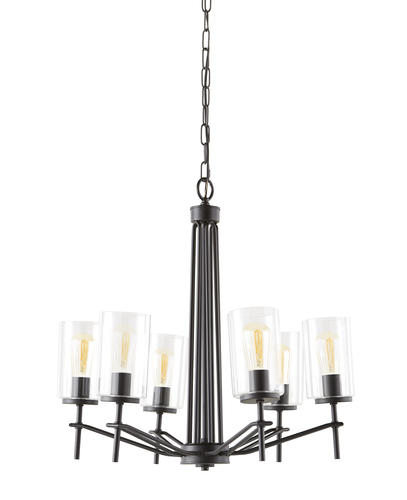 The transitional style of the Nolie six-light matte black chandelier with clear shades is both practical and stylish. The simple style and modern lines make this lighting feature ideal for your home.