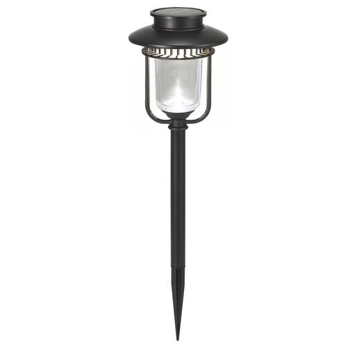 This Patriot Lighting Leighton Solar Integrated LED Landscape Light features a crystalline solar panel and a stainless steel construction with a glass lens. It has an LED brightness of eight lumens, is built in a AA size, and contains a 600mAh Ni-MH rechargeable battery.