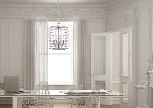 With an urban renewal style, this Patriot Lighting vintage Afton pendant/chandelier is a shining chrome beacon of light. Three 60-Watt vintage/Edison bulbs are included with this piece and will complement any bedroom, kitchen, dining room, or office. The pendant has an adjustable length with five feet of chain available for ease of placement. Easily change to a swag kit with the on/off switch on the cord.