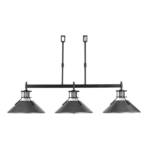 The modern industrial look of the Patriot Lighting® Ashtyn collection adds the perfect urban feel to your home. A stunning matte black finish and charcoal patina cover the metal shade in an intricate way. This unique linear chandelier would be ideal in any dining room, island, or living space where you’d like to make a bold statement. Wait no longer, add the Ashtyn collection to your decor and be impressed by the impact it makes to your spaces.