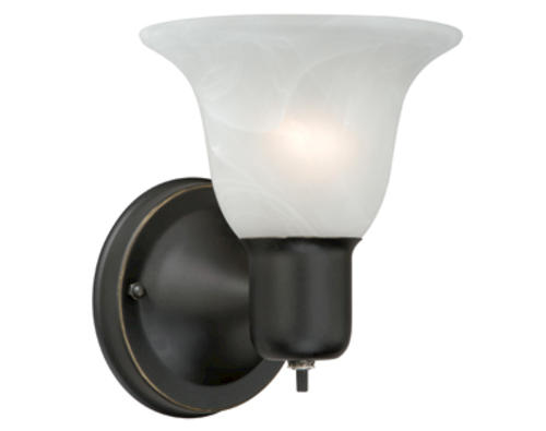 Class and style is the best way to describe the Patriot Lighting® Burley 1 light wall light. The oil rubbed bronze and alabaster glass design creates the perfect accent to any decor. Perfect as a bedside light or where a little extra light is needed. This light has a built in switch that can be used to turn on and off without getting the wall switch.