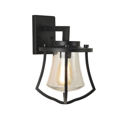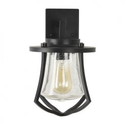 The Patriot Lighting® Wilsyn outdoor wall light is a decorative, functional security light that will not only bring style to your exterior, but will also bring protection. The Black finish and clear Seeded glass fit a variety of styles, especially transitional decor.