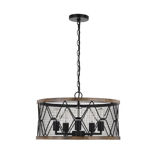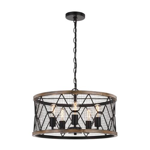 Add remarkable dimension to your kitchen or living room with the Patriot Lighting® Elegant Home Bodhi five-light pendant. With a strong silhouette made of two wood-finish rims adorned in heavy-wire black mesh, this pendant light rocks the retro look. This industrial-chic light also includes five vintage-style light bulbs to enhance your home with charming illumination. Plus, you can customize the hanging height of the light with an included matching 48-inch chain.