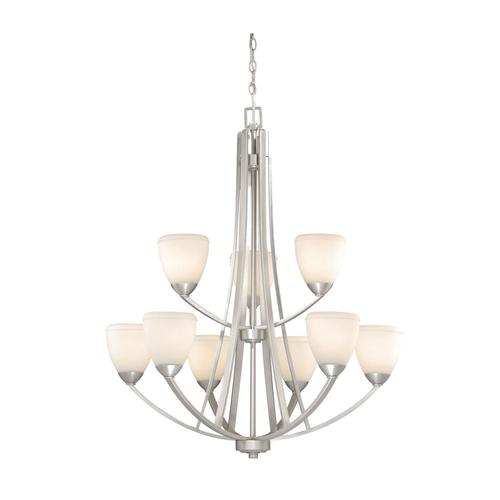 This Helsinki nine-light chandelier is beautifully crafted from durable steel and appointed with frosted opal glass. With its brushed nickel finish, this product would be an amazing addition to light up any living space.