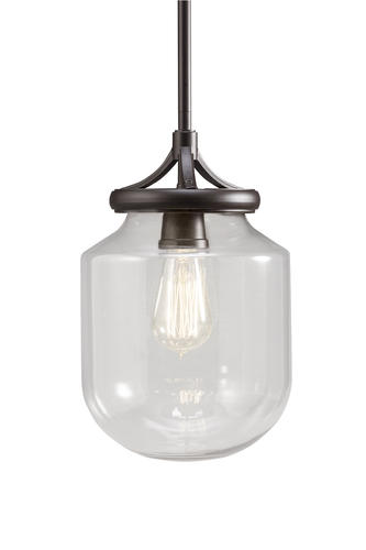 This Judd 1-Light 13″ Olde Bronze Mini Pendant is beautifully crafted from durable metal and appointed with clear glass. This pendant includes the mounting hardware and installation instructions. This light fixture requires (1) 60 watt vintage Edison medium base incandescent bulb (included).