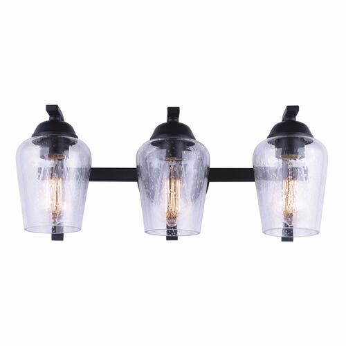 Build your style piece by piece with the addition of the Kari three-light vanity light. The simplicity of this light stands out with its clean lines, trendy matte black finish, and beautiful seeded glass shades that mesh perfectly with the whole transitional style of this fixture. By placing this light over your bathroom mirror, Kari is sure to shine the perfect light over you and your family.