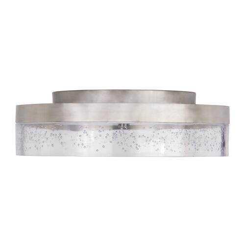 The impressive light that is the Patriot Lighting® Leah collection will have you wanting more than one. With its satin nickel finish and clear seeded glass, this light fits in with just about any decor and style preference. The LED energy-efficient output containing a robust 2,100 lumens can be added to any bedroom, hallway, kitchen, or other living spaces for an easy refresh.