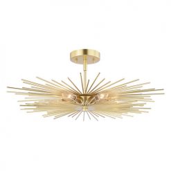 The Nikko collection is bursting with excitement and warmth. Gold finished rods playfully radiate from the central band like rays from the sun. This mid-century modern look is a flirty throwback to a simpler age. With its personality and charm, the Nikko collection feels like a familiar friend, sure to make a statement in any entryway, hallway, or bedroom.