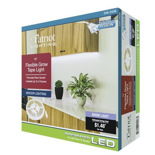 This 10-foot grow tape light is ideal for growing flowers, herbs, and vegetables. The plug-in power cord and adhesive tape allows for quick and easy installation.