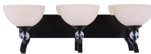 Reinvent your bathroom with the beauty of this three-light vanity from Patriot Lighting® Chantelle collection. The matte black finish is perfectly paired with the opal glass to create a timeless look. The ultimate finishing touch above a sink or vanity, this vanity light is sure to add warmth and charm to your space.