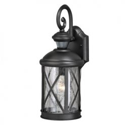 Experience the low-to-high illumination with this Patriot Lighting® Sonoma outdoor wall light with Dualux technology. The black finish and clear seeded glass combine well to create an even more impactful look. The motion-activated security feature allows you to feel at ease when someone approaches your home. This light includes adjustable sensitivity ranges between 5 and 40 feet to fit your needs. Additionally, the energy savings adjustable shut off delay can be set between five seconds to three minutes. Dualux technology features two-level lighting; at dusk the light automatically turns on to an ambient light, then brightens to 100 percent when motion is detected. Moreover, the Sonoma outdoor motion sensing wall light has an advanced feature allowing the low-level light to be adjustable from 0 to 50 percent of full brightness to customize your needs.