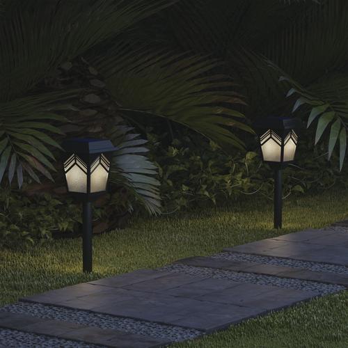 The Patriot Lighting Cora solar landscape light is attractive and efficient. Made of black finished plastic with a textured glass shade are combined for the ideal look. The efficient LED gives you the right amount of light. This bundle includes 4 lights for your convenience and easy placement.