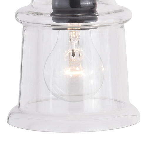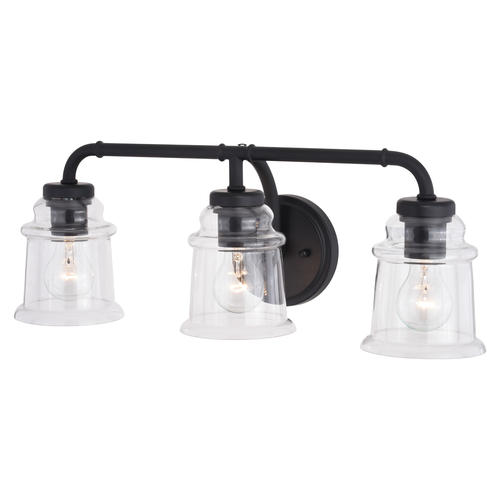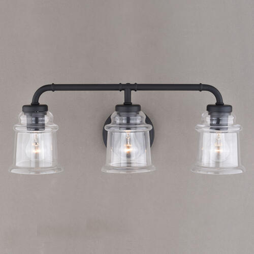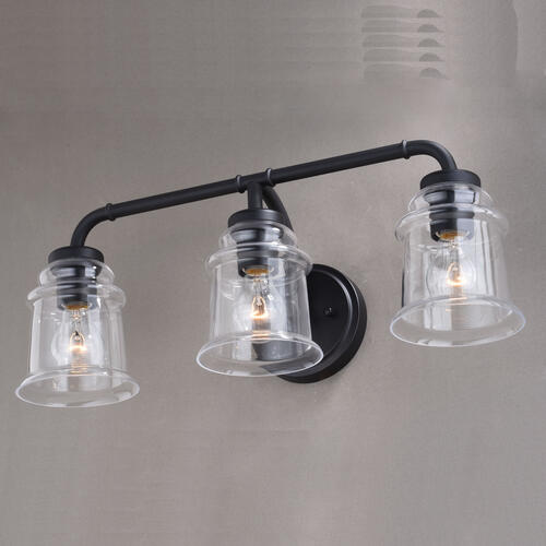 Clean retro lines define this beautiful collection called Toledo. Notes of industrial and farmhouse tradition are defined with the elegance of clear blown glass. Combine that with a vintage Edison style filament bulb to complete the look. Versatile reversible mounting option lets you install this fixture up or down. This bathroom light is perfect over medium vanities or as a pair over double sinks.