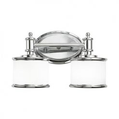 The Carlisle blends formal detailing with relaxed style for a transitional lighting collection that is sure to please. The frosted opal glass cylinders are smartly trimmed in chrome to match the rest of the fixture. This vanity is part of a full collection with coordinating pieces to decorate any room in the house. Versatile reversible mounting option lets you install this fixture up or down.