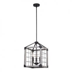 Brand new ⌛ Patriot Lighting® Elegant Home Levon Weathered Gray Faux Wood & Black 3-Light Pendant 🥰
