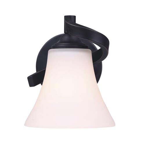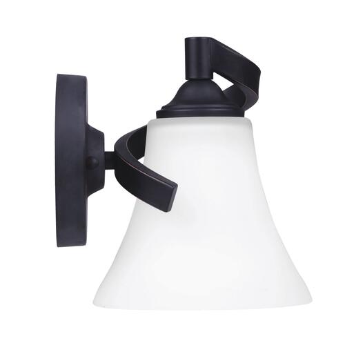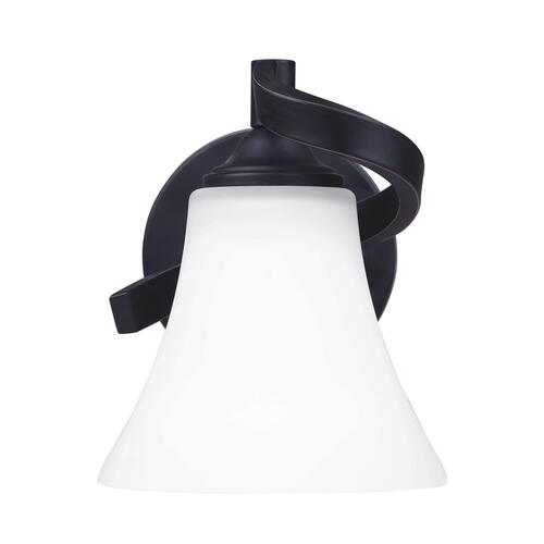 Add a twist to your bathroom lighting with the Dee single vanity light. Dee stays traditional with its oval backplate and curvaceous arms, while adding a transitional touch with the use of a beautiful seeded glass shade and a rubbed antique bronze finish.