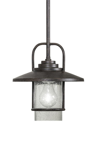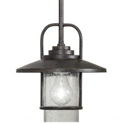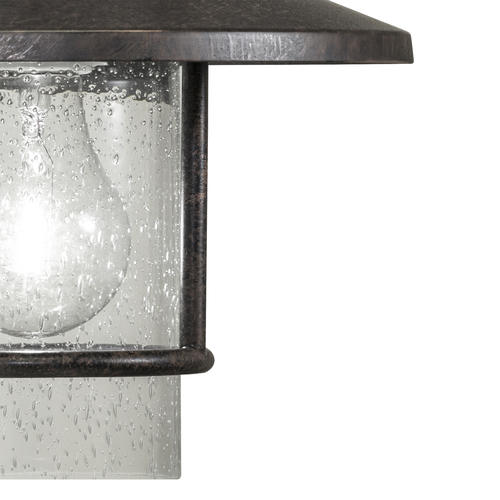 Bring subtle atmosphere to a transitional space with this pendant. A textured bronze finish and clear seeded glass combine for a contemporary look that will complement a wide range of decor, from industrial to modern.