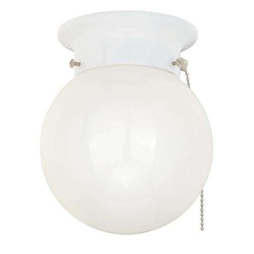 This Patriot Lighting® Globe six-inch white transitional LED flush mount light is beautifully crafted from durable steel and appointed with frosted opal glass. It also has a pull chain for easy handling. It only uses 11.7 watts of electricity, but produces 520 lumens with a color temperature 3,000 kelvin, equivalent to a 60-watt incandescent bulb, to save energy. This indoor ceiling light is ideal for entryways, kitchens, bedrooms, and other interior areas.